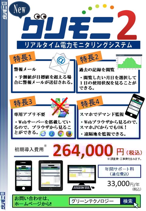 「グリモニ2」は、使用エネルギーをリアルタイムに把握できる電力遠隔監視システムです。
